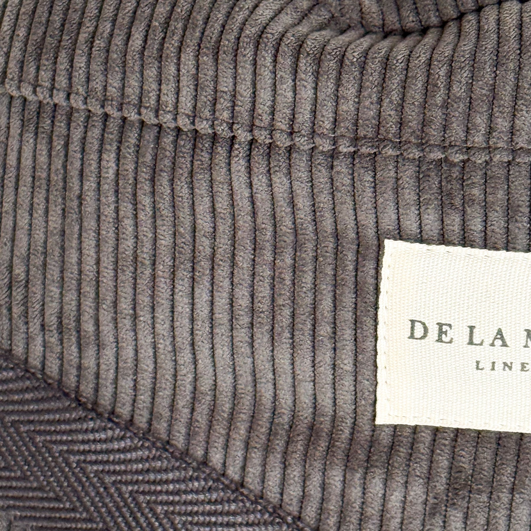 Fanny pack-style crossbody bag with an adjustable long strap made of beige herringbone cotton tape. Made with thick dark gray upholstery fabric. Top zipper closure. Inner pocket. Lined with thick gray fabric on the inside. For proper care, it is recommended to hand wash in cold water and do not use a dryer.