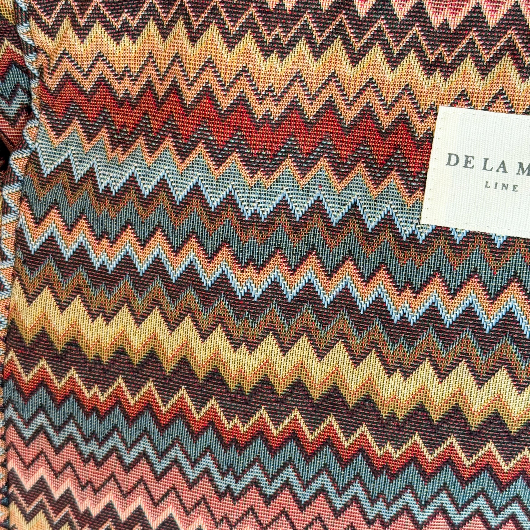 Made from thick jacquard fabric with a multicolor zigzag pattern.
