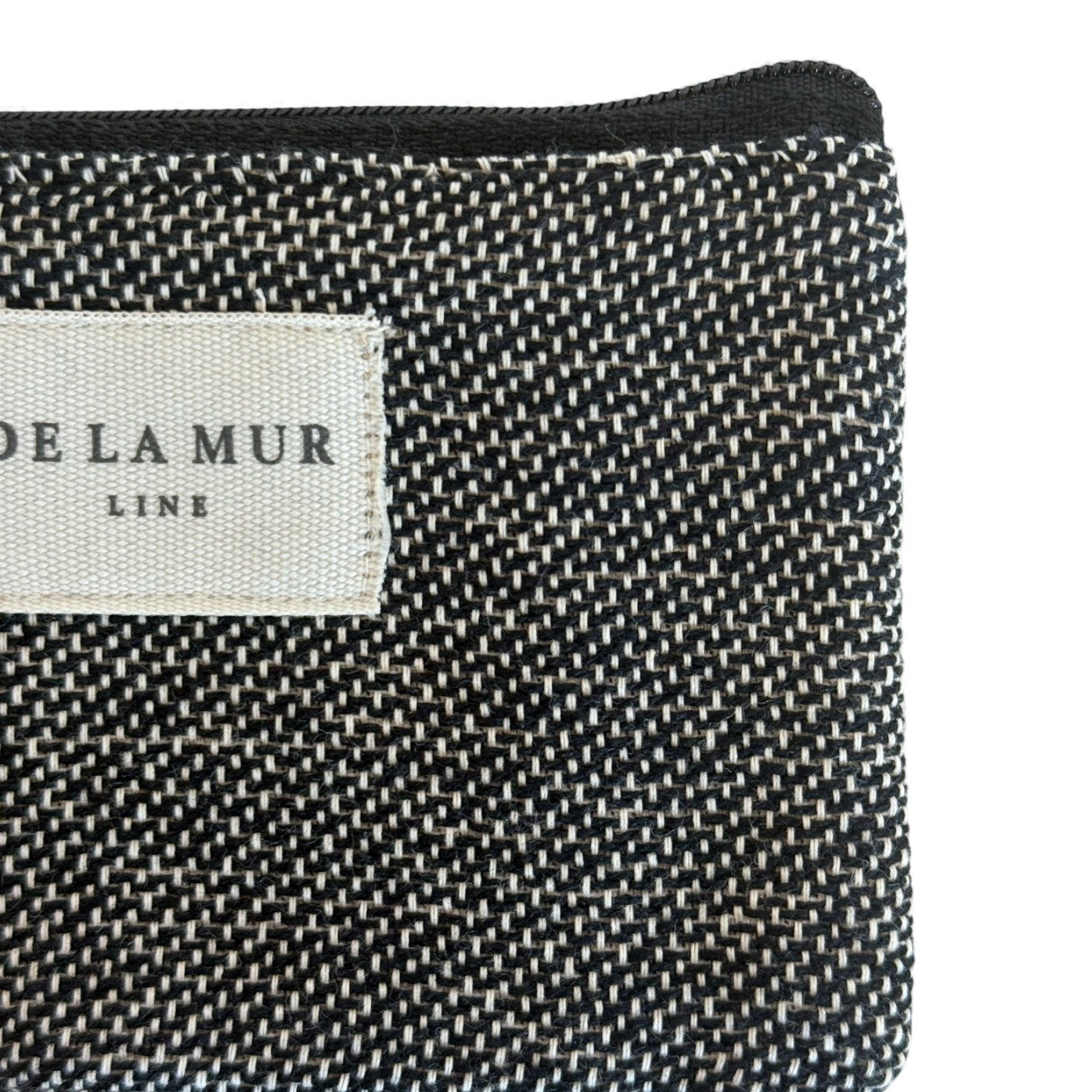 Coin purse with a top zip closure and a small natural-colored cord wrist strap on the side. Made from thick jacquard fabric (80% cotton, 20% polyester) in black/dark grey tones. Each item may vary slightly in pattern placement depending on where the fabric is cut. Lined with thick grey fabric on the inside. For proper care, we recommend washing in cold water and not using a tumble dryer.
