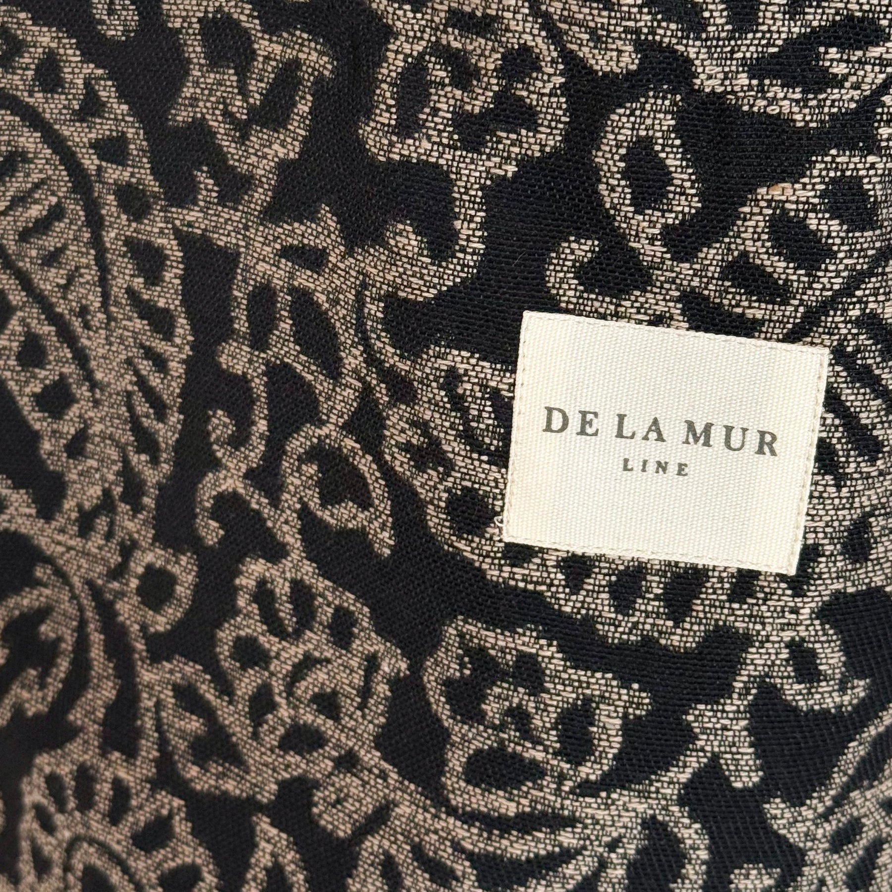 Tote bag with shoulder straps. Made with thick jacquard fabric with a gray floral print on a black background. For proper care, we recommend washing in cold water and not using a dryer.