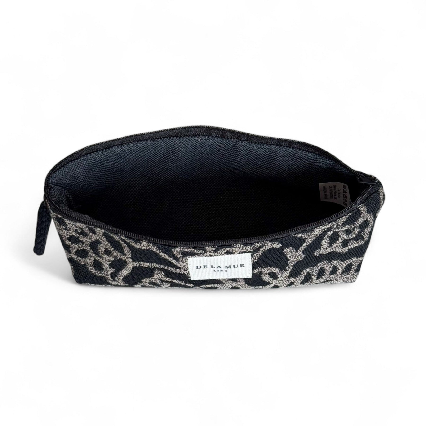Made from thick jacquard fabric with a floral print in beige on a black background. Each item may have slight variations depending on where the fabric was cut. Lined inside with thick gray fabric. For proper care, hand wash in cold water and do not use a dryer.
